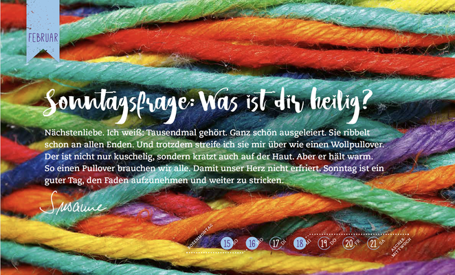 Lasst uns zusammen die Welt anhalten. Jeden siebten Tag. Und plötzlich wieder wissen: Da ist noch Luft nach oben!